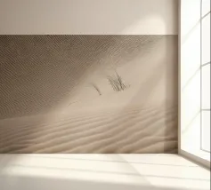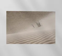 Dettaglio di una duna di sabbia. Modello di sabbia nel deserto del Sahara. Arte astratta in Mauritania. Paesaggio e natura in Africa. Con un po' di verde botanico.