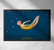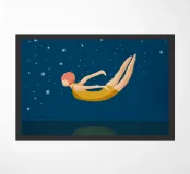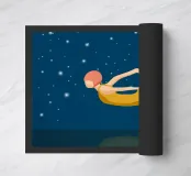 Un momento di quiete tra sogno e realtà: una donna in costume da bagno giallo galleggia senza peso sull'acqua, il suo riflesso si confonde nelle profondità notturne. Le stelle scintillano sopra di lei, il silenzio si trova sotto: un simbolo di coraggio, di lasciarsi andare e di tuffarsi nell'ignoto.