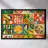 Un motivo vivace e intricato che ricorda una trapunta, composto da vari quadrati con simboli e disegni geometrici ispirati all'arte popolare. La ricca tavolozza di colori crea un'atmosfera calda e artigianale.