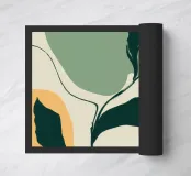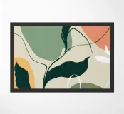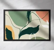Una composizione elegante e minimalista che presenta forme botaniche delineate su blocchi di colore tenui e organici. L'opera d'arte fonde il disegno lineare con le forme astratte per un'estetica naturale sofisticata e moderna.