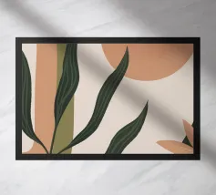 Una composizione elegante e minimalista che presenta forme botaniche delineate su blocchi di colore tenui e organici. L'opera d'arte fonde il disegno lineare con le forme astratte per un'estetica naturale sofisticata e moderna.