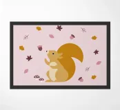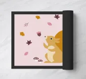 Un simpatico scoiattolo geometrico gioca tra le foglie che cadono e le ghiande, nei toni tenui del rosa e del miele. Minimalista e dall'aspetto scandinavo, questo motivo porta pace e calore nelle camere dei bambini e negli spazi abitativi autunnali. Perfetto come poster o stampa d'arte incorniciata.