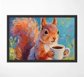 Scoiattolo che tiene una tazza di caffè con pittura fauvismo stile arte
