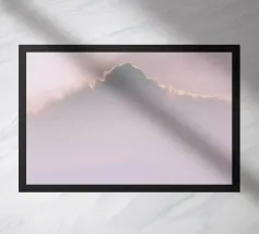 Una forma vaga che assomiglia a una silhouette si staglia su uno sfondo tenue, dando l'impressione di un'ombra o di una figura spettrale. I colori sono tenui e i contorni non sono netti, il che conferisce alla scena un carattere mistico o etereo.