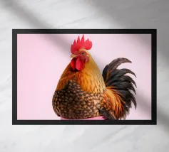 La coppia di galli in piedi l'uno accanto all'altro sembra così vicina e calorosa. Il gallo con le sue piume colorate, la cresta rosso vivo, il portamento fiero e gli occhi luminosi mostra forza e maestosità. Accanto a lui c'è una piccola gallina con le sue piume dorate, gli occhi gentili, la postura aggraziata e delicata. I due stanno l'uno accanto all'altra come una coppia armoniosa - uno forte, l'altro gentile - evocando l'immagine di attaccamento, protezione e forte affetto nella vita naturale.