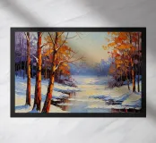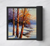 Fuggite in un tranquillo paese delle meraviglie invernale con questo splendido dipinto a olio dalla forte texture. Questo paesaggio impressionista cattura la serena bellezza di un ruscello coperto di neve che si snoda attraverso una foresta di alberi spogli, i cui rami risplendono della calda luce dorata del sole al tramonto. Le pennellate spesse e visibili creano una superficie ricca e tattile, dando vita alla neve scintillante, all'acqua gelida e al fogliame luminoso. Questo pezzo evoca una sensazione di pacifica solitudine e la tranquilla magia di una frizzante serata invernale. È un complemento perfetto per chiunque voglia aggiungere un tocco di calma e di bellezza naturale alla propria vita.