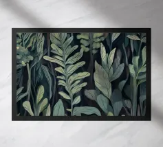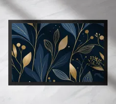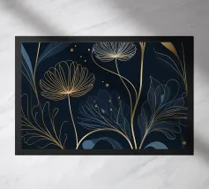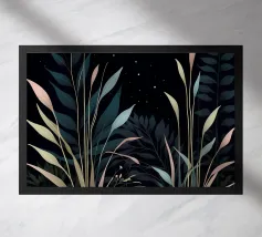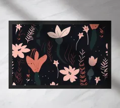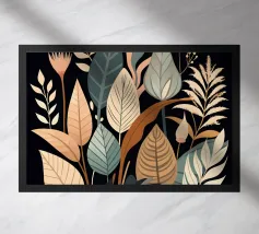 Questa elegante stampa botanica astratta presenta un'armoniosa miscela di foglie e fiori delicati nelle rilassanti tonalità del blu, del verde e del pesca. Il motivo si staglia su uno sfondo nero profondo, creando un'atmosfera sofisticata e rilassante. Perfetto per aggiungere un tocco di natura all'arredamento della vostra casa.
