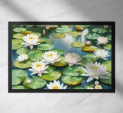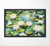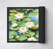 Questo pezzo accattivante cattura la tranquilla bellezza di uno stagno assolato pieno di eleganti ninfee bianche e dorate. Le ninfee verdi fluttuano con grazia sull'acqua blu riflettente, creando una scena tranquilla e serena. Il bagliore morbido e radioso dei fiori e il delicato luccichio dell'acqua evocano un senso di calma e armonia naturale, rendendolo un'aggiunta perfetta a qualsiasi spazio che cerchi un tocco di tranquillità.