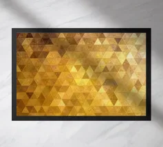 Il design presenta una serie di forme geometriche dorate che si intersecano e creano un effetto tridimensionale, perfetto per gli sfondi moderni.