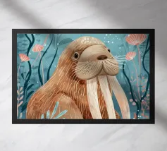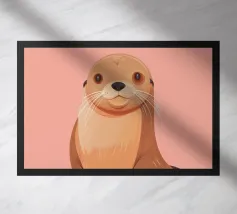 Godetevi una vivace illustrazione della fauna selvatica con una foca felice con il suo piccolo nell'oceano, con pioggia e pesci sullo sfondo.