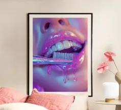 Un'esplosione di freschezza retrò con questa vibrante illustrazione pop art! Caratterizzato da labbra in grassetto, un classico spazzolino da denti pieno di pasta alla menta e un energico sfondo a strisce, questo pezzo irradia una sensazione di frizzante freschezza e di sicura igiene orale. È un'elegante strizzata d'occhio alla pubblicità vintage con un messaggio senza tempo di igiene pulita!