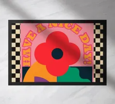 Questa opera d'arte vibrante ed edificante presenta un colorato bouquet di fiori con il messaggio ispiratore "Dream Big, Be Grateful, Live Simply" scritto in grassetto a caratteri rossi. I fiori sono disegnati in uno stile allegro e stravagante, con una varietà di forme e colori. Questa opera d'arte è perfetta per aggiungere un tocco di positività e gioia a qualsiasi spazio.