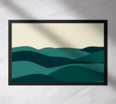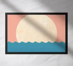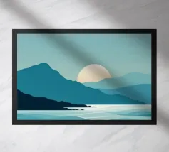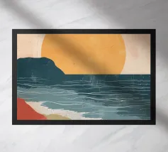 Abbracciate la profonda bellezza della serena solitudine. Questo paesaggio minimalista cattura il momento di quiete in cui il sole bacia l'orizzonte, proiettando una calda luce su un mare tranquillo. Utilizzando forme semplici e una tavolozza di terracotta e blu tenui, questo pezzo è un invito aperto a fermarsi, respirare e trovare un momento di tranquillità in un mondo affollato. È l'opera d'arte perfetta per creare un punto focale calmo e meditativo in salotto, in camera da letto o in qualsiasi altro spazio in cui si cerchi pace e una dolce evasione.