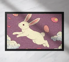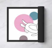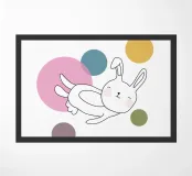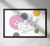 Illustrazione di un simpatico coniglio che salta nello spazio. "Neo" fa parte della collezione Space Rabbits.