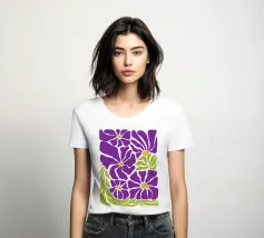 Spring Violet Paradise presenta fiori astratti in rinfrescanti tonalità primaverili. Un design moderno e autentico che celebra la bellezza della natura, portando gioia e risollevando l'umore con le sue tonalità vivaci.