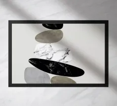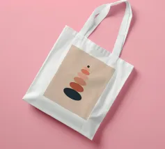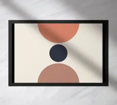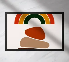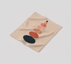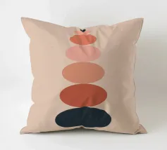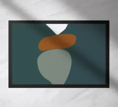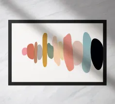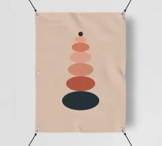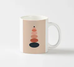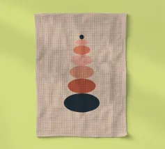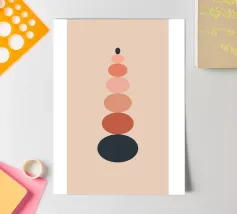 Una serie di forme ovali impilate, di dimensioni e tonalità diverse, formano una torre. I colori passano dolcemente da toni scuri in basso a toni più chiari in alto, culminando in un piccolo cerchio scuro.