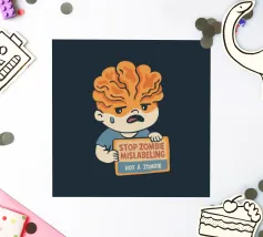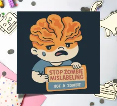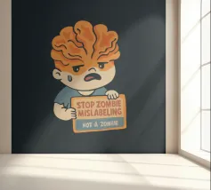 Un simpatico ma chiaramente irritato clicker regge un cartello con la scritta: "Stop Zombie Mislabeling - Not a Zombie". L'arte gioca con il classico errore di chiamare zombie le persone infette, portando un sacco di umorismo e simpatia a chi ama The Last of Us. Perfetto per i fan dei giochi, della cultura geek e per chiunque ami stampare sarcasmo sulle proprie t-shirt.