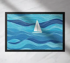 Un faro a strisce bianche e rosse si erge resistente tra onde tumultuose sotto un cielo drammatico. La scena emana un senso di forza e perseveranza contro i potenti elementi della natura.