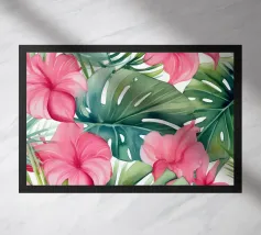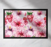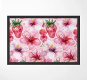 Un delizioso disegno acquerellato che combina succose fragole rosa con morbidi fiori di ibisco rosa su uno sfondo rosa chiaro. Questo dolce disegno tropicale fonde frutta fresca e fiori esotici per un'estetica femminile ed estiva. . Perfetto per gli amanti delle fragole, per gli appassionati di tropici, per i fan dell'estetica rosa e per tutti coloro che amano l'affascinante combinazione di dolci bacche e splendidi fiori tropicali dai toni morbidi e romantici.