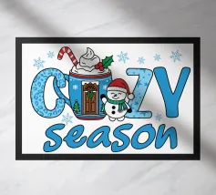 Un allegro disegno a tema natalizio presenta un omino di pan di zenzero con un cappello da Babbo Natale, circondato da icone festive come bastoncini di zucchero, alberi di Natale e campanelle. Il testo in grassetto "The Cookie Crew" cattura il giocoso spirito natalizio.