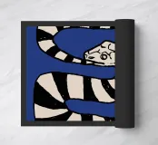 Lo Snake Eating Tail illustra l'intramontabile motivo dell'ouroboros su un audace sfondo blu. Evocando il mistero, la saggezza e l'infinito, quest'opera d'arte unisce l'eredità mitologica al minimalismo moderno, diventando un pezzo unico. Completa la collezione di quattro varianti che possono essere mescolate e abbinate per creare una parete dinamica.