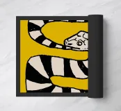 Il serpente che mangia la coda mette a fuoco il leggendario ouroboros con vibranti toni gialli, che simboleggiano rinnovamento ed energia. Questa illustrazione ispirata ai miti cattura l'eterno ciclo della vita, fondendo l'antico simbolismo con l'audace arte contemporanea. Una delle quattro varianti che si combinano perfettamente in un set di grande effetto.