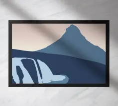 Disegno di viaggio minimalista e decorativo con "The Wave", la colorata formazione rocciosa sulle pendici del Coyote Buttes in Arizona, USA. Un disegno per le vacanze estive per tutti coloro che amano andare in vacanza nei parchi nazionali degli Stati Uniti e trovano bella questa natura e il paesaggio rossastro.
