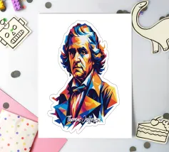 Celebrate l'eredità di Thomas Jefferson con questo straordinario disegno Pop Art di WPAP. Caratterizzata da audaci forme geometriche e da una vivace tavolozza di colori, quest'opera d'arte reinterpreta il terzo presidente degli Stati Uniti in uno stile moderno e astratto. La tecnica WPAP (Wedha's Pop Art Portrait) cattura il ruolo fondamentale di Jefferson come padre fondatore, autore della Dichiarazione di Indipendenza e sostenitore della democrazia e dei diritti individuali. Perfetto per gli appassionati di storia, gli studiosi di politica e gli amanti dell'arte, questo disegno è un tributo unico a una delle figure più influenti della storia americana.