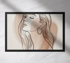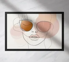 Un tocco di sicurezza giocosa e di chic moderno. Questa illustrazione artistica a una linea cattura una donna elegante con un sottile ammiccamento, vista attraverso occhiali da sole colorati di rosa. I blocchi di colore astratti in rosa blush e oro caldo aggiungono un tocco morbido e contemporaneo. Un pezzo perfetto per portare un'energia leggera e alla moda nel vostro spazio.