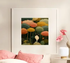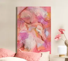 Delicate sfumature di rosa, rosa e viola incontrano forme fluide e linee sottili.