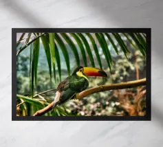 Con il suo iconico becco e la sua posa rilassata, questo tucano sembra nato per la vita sull'amaca. Porta colore e calma, sia che lo appendiate in giardino che in un angolo soleggiato. Una stampa estiva che ricorda che anche il dolce far niente è un talento.