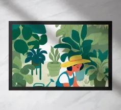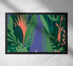 Una vivace e moderna natura morta con un tucano stilizzato, un vaso di fiori e una brocca blu. La composizione è una celebrazione audace, colorata ed eclettica della bellezza tropicale e della forma artistica.