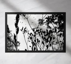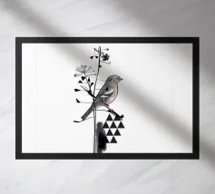 Quando in autunno sbocciano gli ultimi fiori, la rosa canina risplende e l'erba si affievolisce, gli uccelli si dirigono verso sud. Decorate la vostra stanza con questa illustrazione minimalista del nostro mondo naturale e del fascino moderno.