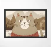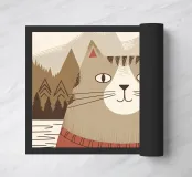 Un adorabile gatto con un maglione a righe, in piedi davanti a un tranquillo lago circondato da montagne. Questo disegno, con il suo stile grafico morbido e i suoi colori naturali, evoca la serenità, la natura e la stagione fredda. Perfetto per la cameretta di un bambino, per un interno accogliente o per gli amanti dei gatti e dei mondi caldi. Un'illustrazione che unisce spirito nordico, umorismo discreto e fascino animale.