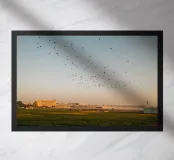 Quando arriva l'autunno a Berlino, è il mio momento di girare per la capitale con la macchina fotografica. Ho scattato questa foto in una fresca mattina d'autunno a Tempelhofer Feld (l'ex aeroporto di Tempelhof). Ho premuto il pulsante di scatto al momento giusto, mentre uno stormo di uccelli volava nel cielo. La sagoma della torre della televisione di Berlino è ancora leggermente visibile sullo sfondo. :)