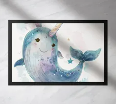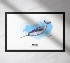 Un affascinante poster di un narvalo, noto anche come balena unicorno, illustrato in un morbido stile acquerello. Perfetto per gli amanti dell'oceano, per le camere dei bambini, per l'arredamento costiero o per chiunque ami l'arte marina stravagante con un tocco magico.