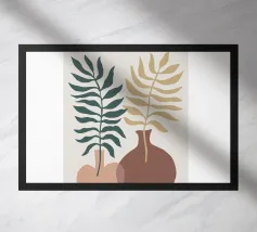 "An abstract botanical art wallpaper features stylized representations of plants and foliage using artistic shapes, flowing lines, and modern color palettes. Rather than realistic depictions, the desig"