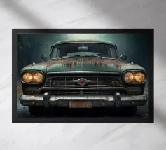 Un vecchio furgone per le consegne francese in ferro ondulato verde attraversa un parco in Francia