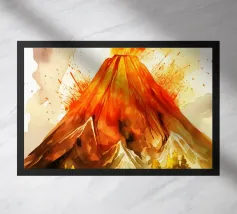Un vulcano torreggiante si staglia contro il cielo, con le sue pendici scure striate da vecchie colate di lava. Densi pennacchi di fumo salgono dal cratere, si disperdono nell'aria e dipingono l'orizzonte con sfumature di grigio. L'atmosfera è tesa e viva, come se la terra stessa respirasse.