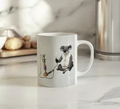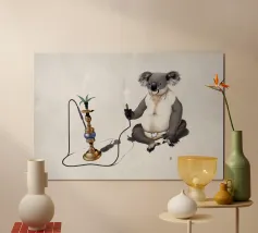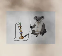 Comica illustrazione di un koala che si gode gli effetti della sua solita pianta di eucalipto. In modo meno tradizionale.