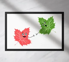 Due lampadine dei cartoni animati, una verde e una rossa, si confrontano in una conversazione scherzosa sul lavoro durante le vacanze. La lampadina verde pone la domanda, mentre la lampadina rossa risponde con umorismo.