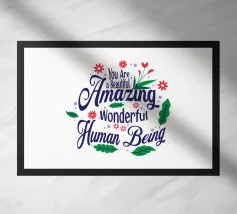 Tutti noi a volte abbiamo la sensazione di non essere abbastanza bravi, chi più chi meno, ma la verità è che siamo perfettamente sufficienti così come siamo. Siamo nati perfetti e il resto sono solo abilità che dobbiamo sviluppare nel corso della nostra vita. Tipografia floreale con messaggio positivo.