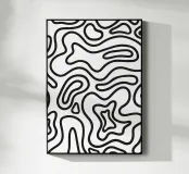 Un motivo minimalista ipnotico e audace, caratterizzato da spesse linee ondulate nere e continue che scorrono in modo dinamico sull'intero sfondo bianco. Il disegno astratto ricorda le forme organiche, le mappe topografiche o il movimento fluido dei liquidi, evocando un'estetica cool, retrò anni '70 o groovy. La tavolozza di colori bianco e nero, ad alto contrasto, crea un punto focale potente e grafico. Questo poster digitale di qualità superiore (7000x5000 pixel, 300 dpi) assicura che i bordi puliti e nitidi e le linee decise dell'illustrazione originale siano perfettamente conservati, offrendo un'opera d'arte eccellente per aggiungere un tocco di classe.