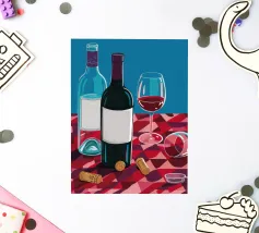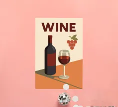 "A Sip of Reflection" è un sottile tributo alla semplicità e alla bellezza delle cose semplici. Toni pacati e linee moderne si uniscono per creare un'opera d'arte rilassante e sofisticata. Questo design è ideale per chi cerca un equilibrio tra uno stile minimalista e il gusto per il buon vino. Perfetto per una sala relax o una cucina, invita a rallentare e ad apprezzare i momenti di tranquillità, valorizzando lo spazio con una palette di colori rossi tenui e armoniosi. Un must per gli eleganti amanti del vino.