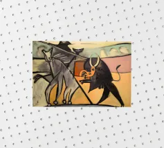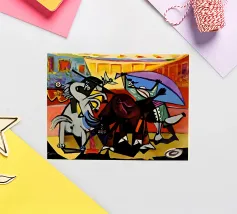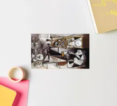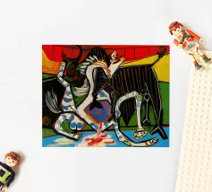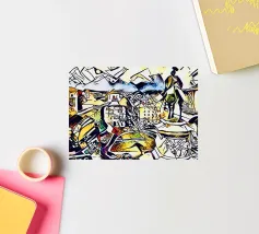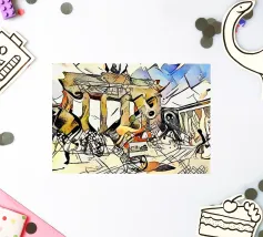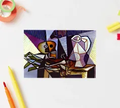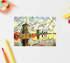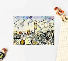 Questo dipinto astratto vibrante ed energico presenta un gioco dinamico di forme frammentate e linee audaci, con una ricca tavolozza di arancioni, gialli, viola e blu. La composizione suggerisce elementi decostruiti, forse figure o oggetti, in un movimento vorticoso ed energico, caratteristico delle influenze cubiste ed espressioniste astratte. I dettagli intricati e i colori contrastanti creano un'esperienza visiva accattivante e stimolante. Questo poster digitale di alta qualità (7000x5000 pixel, 300 dpi) cattura magnificamente l'energia grezza e il genio artistico dell'originale, ma
