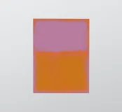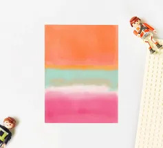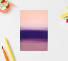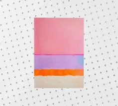 Un'opera d'arte astratta minimalista in campo cromatico ispirata a transizioni morbide e bordi grezzi del pennello.