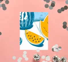 Un fresco mix di anguria succosa e api indaffarate! Questo disegno mostra la bellezza di una succosa anguria e delle api che le ronzano intorno.