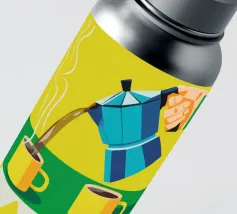 Adesivi realizzati in film PP/PET con laminazione protettiva e diverse tipologie di superficie.