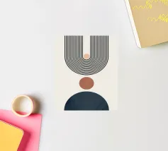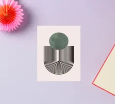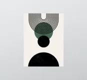 Questo disegno geometrico combina linee nere chiare che formano un semicerchio con cerchi sovrapposti in verde e nero. Il contrasto tra i colori tenui e lo sfondo chiaro conferisce a questo motivo un'estetica moderna e armoniosa. Perfetto per murales, tazze, cuscini o cover per cellulari, conferisce un'atmosfera elegante e rilassante a qualsiasi ambiente. Ideale per gli amanti dell'arte boho minimalista e senza tempo e come idea regalo ispiratrice.