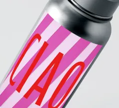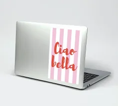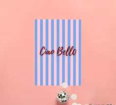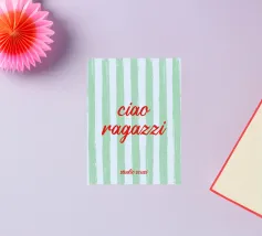 scritta ciao ciao ciao su motivo a quadri color pistacchio.
